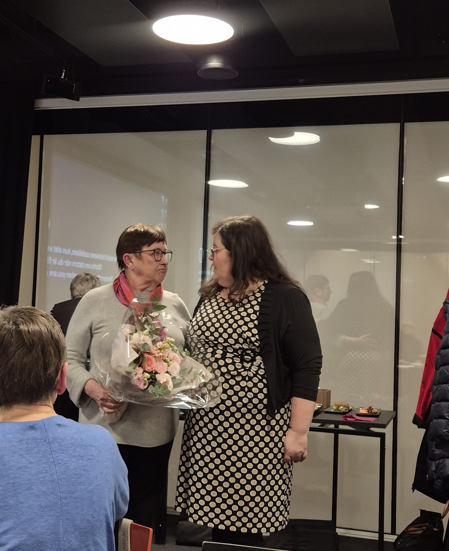 Föreningens viceordförande Harriet Corin (till vänster) avtackade styrelsens avgående ordförande Maria Ekman (till höger). Ett stort tack till Maria för allt hon gjort för föreningens bästa. Vi önskar henne lycka till med kommande utmaningar.