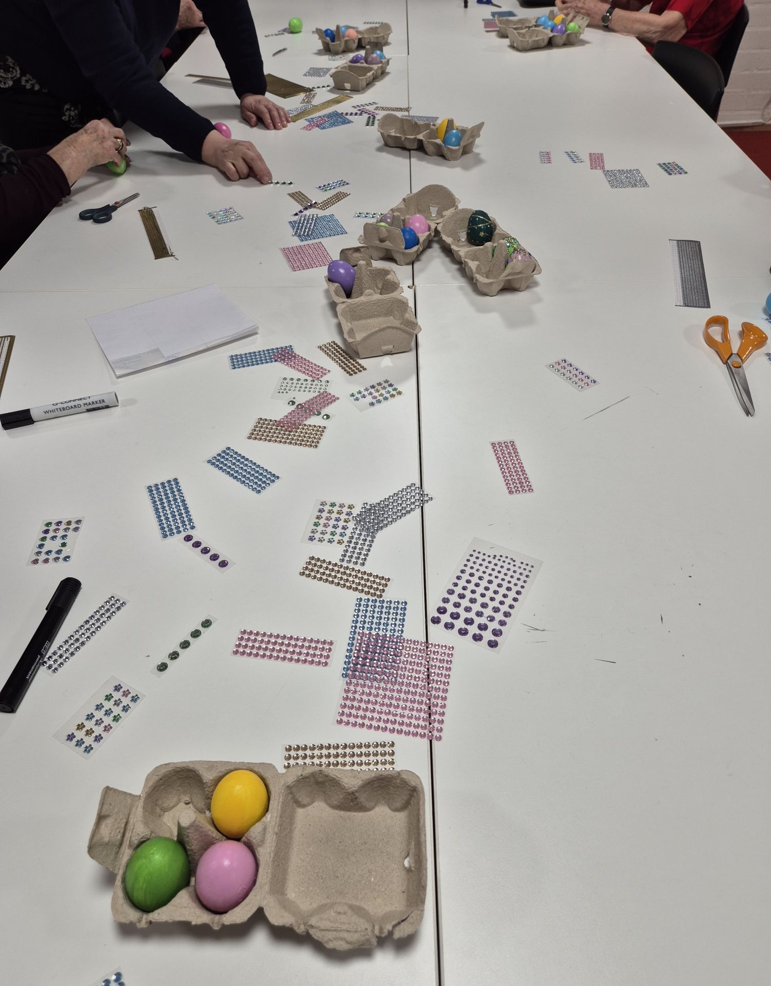 Fredagen den 27.3.26 ordnades årets andra kamratstödsträff i Tölö bibliotek. Temat var påsken och deltagarna fick dekorera påskägg. Det var ivriga deltagare som dekorerade det ena påskägget efter det andra. Sedan njöt vi av påskäggsutställning, hade livliga diskussioner och drack en kopp kaffe eller te och avnjöt nybakade kanelbullar.